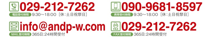 mailto:info@andp-w.com?subject=%E3%83%A1%E3%83%BC%E3%83%AB%E4%BB%B6%E5%90%8D
